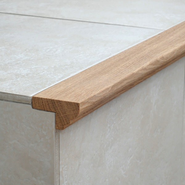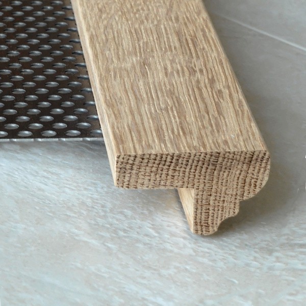 Nez de marche en chêne massif avec grille à sceller dans la colle à carrelage. Longueur à choisir entre 20 cm et 50 cm